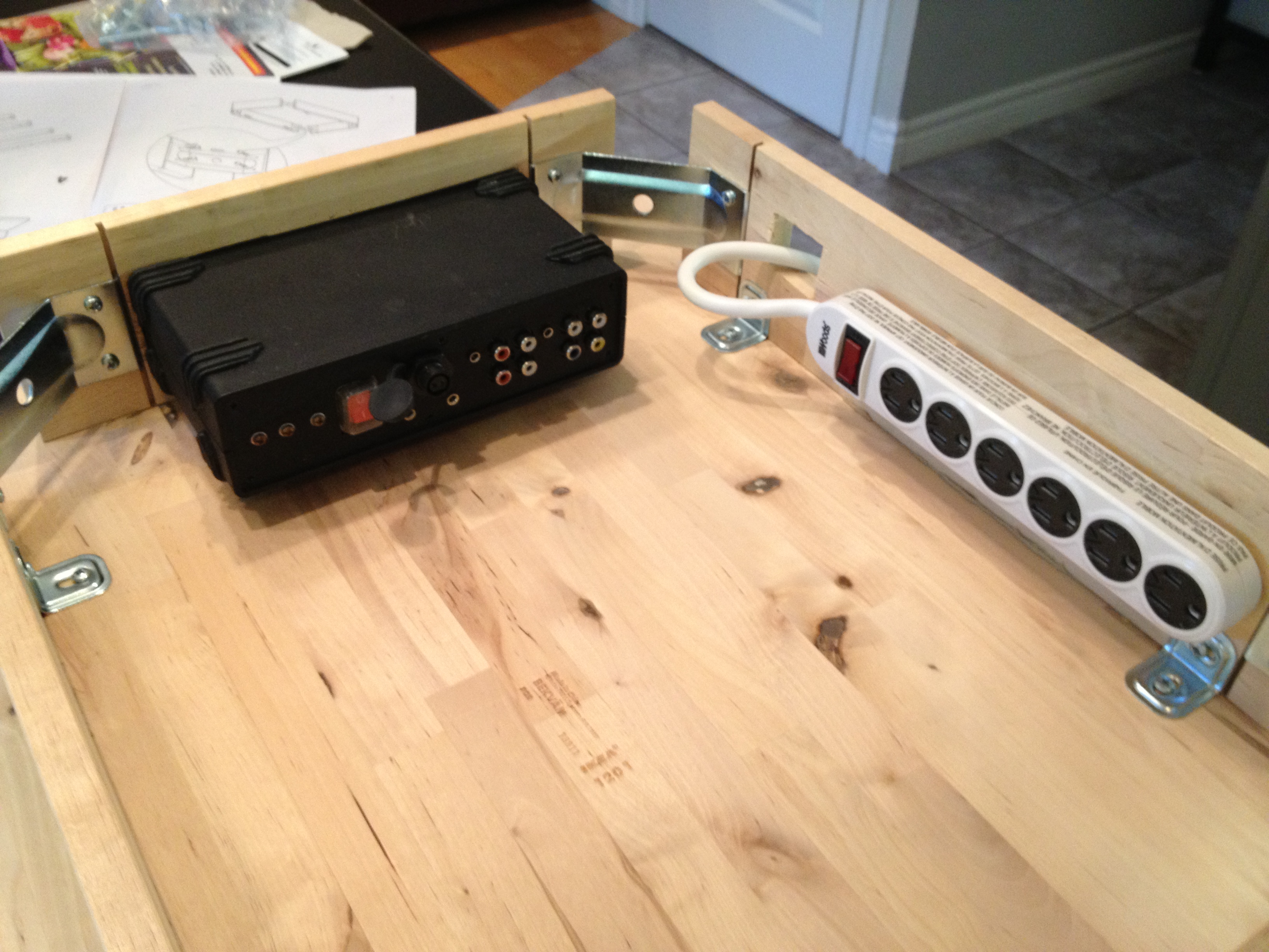 2. I assembled the table top portion as per the Ikea instructions and then dry fitted the amp and power bar.