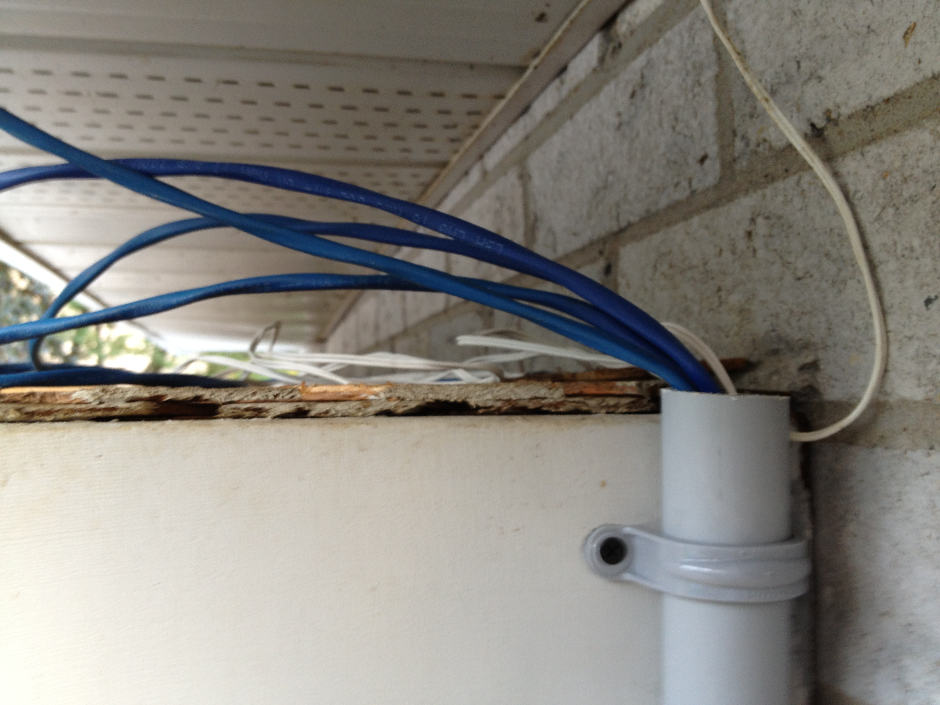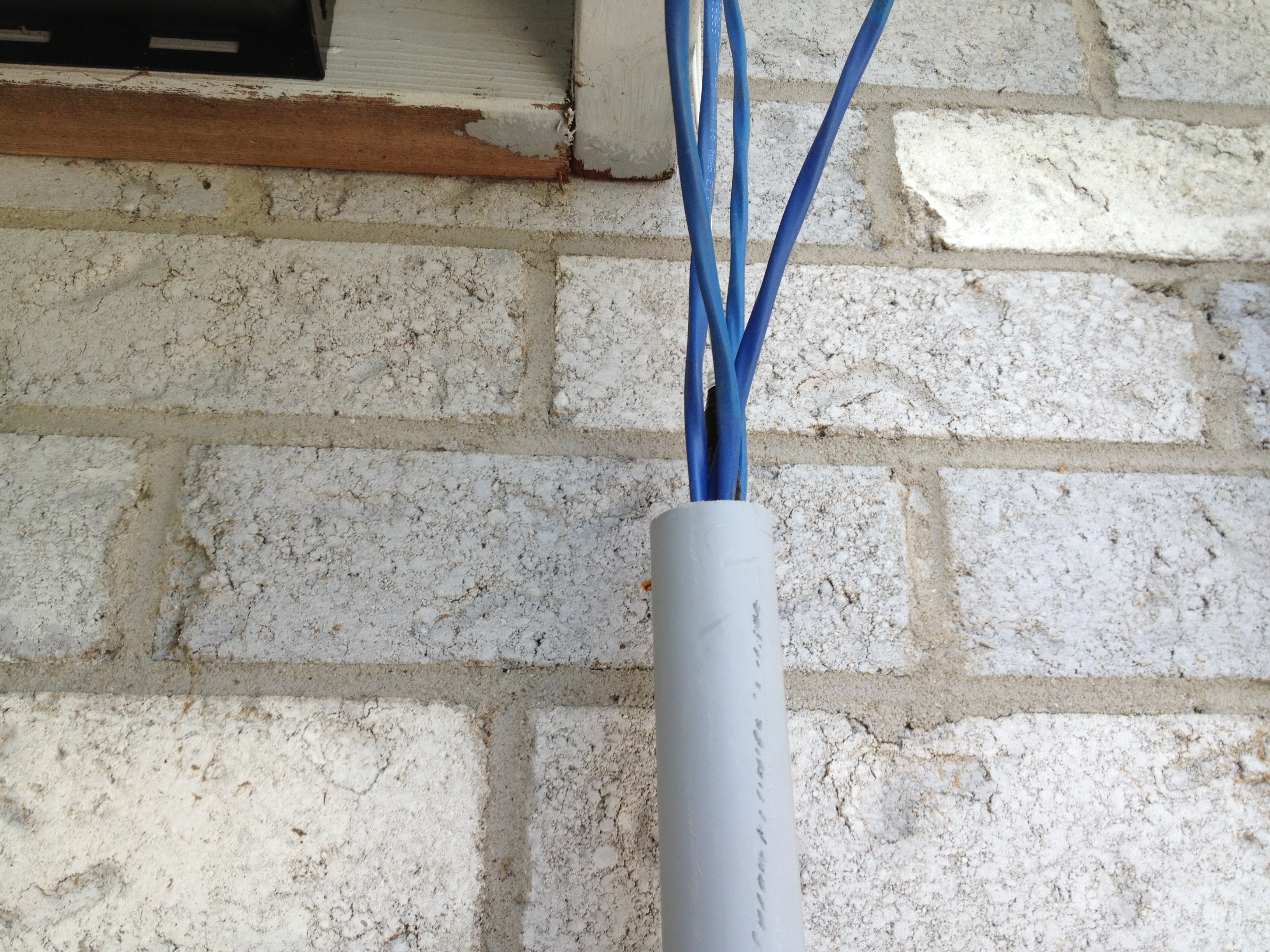 5. I cut the conduit, ran the speaker wires and my IP Camera wires through it and attached it to the pergola.