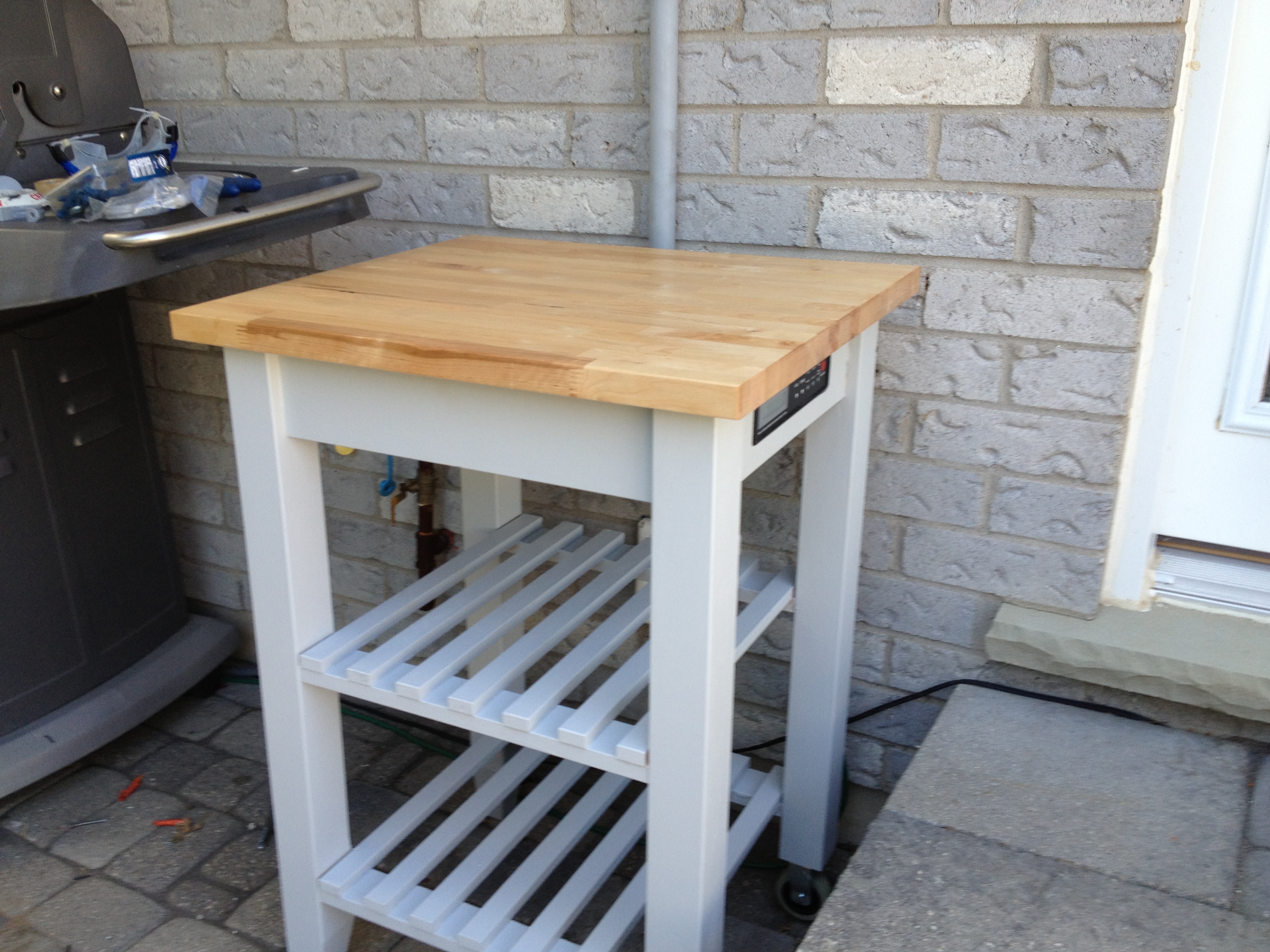4. I stained the base, to match my pergola, and conditioned the butcher’s block.