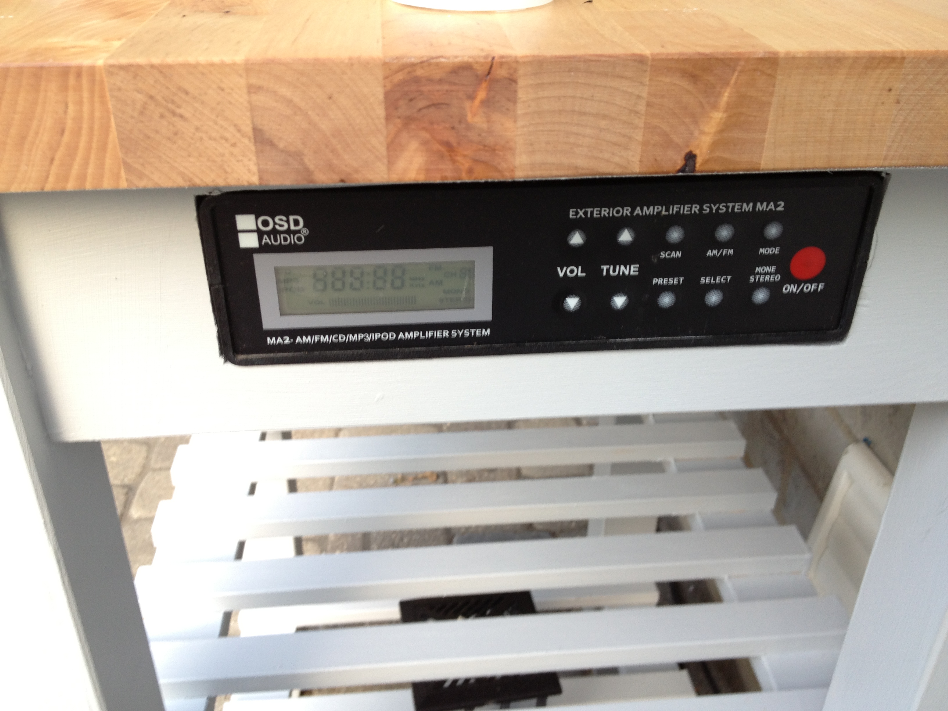 I was looking for a cabinet or table to put next to my BBQ that I could install my outdoor amp and Apple AirPort Express into. This is to allow me to stream music from my iMac to my outdoor speakers.